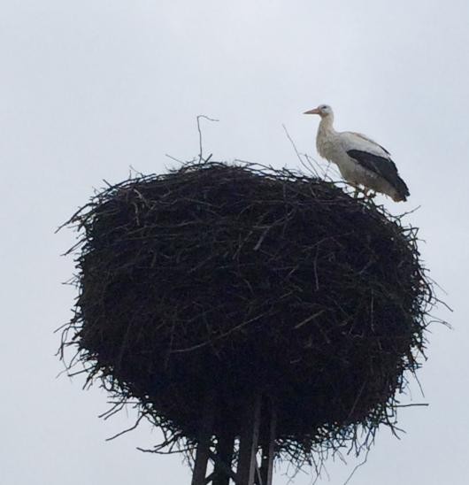 Nettgau - Heute um 8:30 Uhr landete Storchie wieder in seiner Kinderstube. Wenn seine Eltern kommen, wird es wohl Zoff geben. Wer bleibt dann wohl im Nest? Danke, Anne Kutschan, für das gelungene Foto!