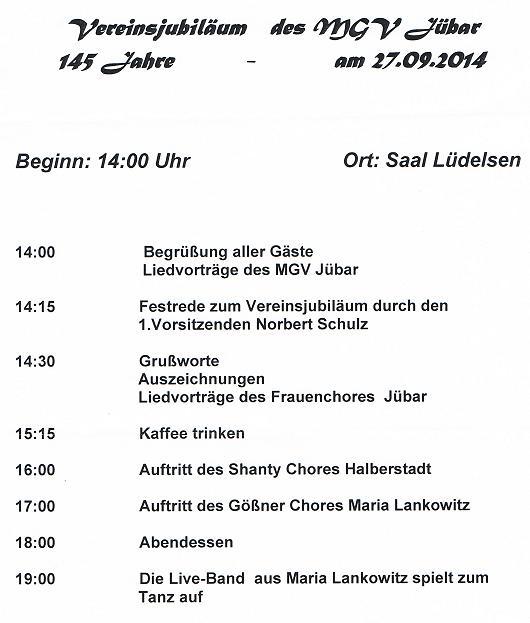 Bock „Obrigkeit und Untertanen. Alltagsleben im 18. Jahrhundert in der nordwestlichen Altmark“ (mit Auftritt des Jübarer Männerchores, Verpflegung und Enthüllung einer Gedenktafel zur Erinnerung an
