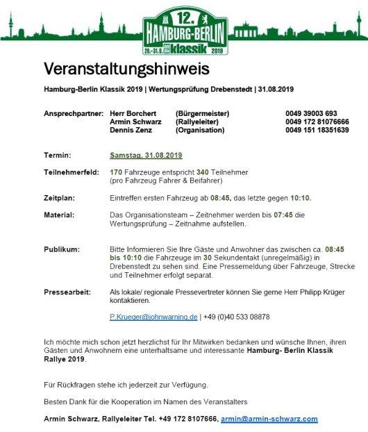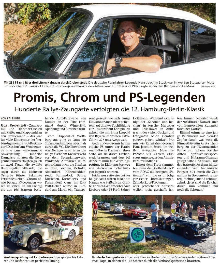 20190827 Altmark Zeitung - Drebenstedt - Auto-Ralley 'Hamburg-Berlin 2019' am Sonnabend bei uns (Kai Zuber)