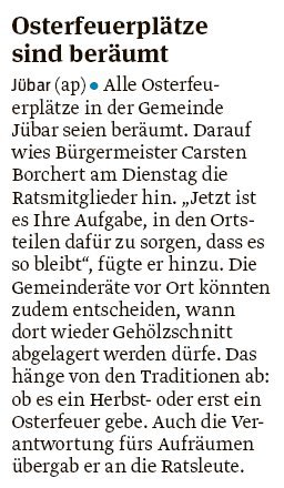 - Gemeinde - Osterfeuerplätze unter Ratsaufsicht -