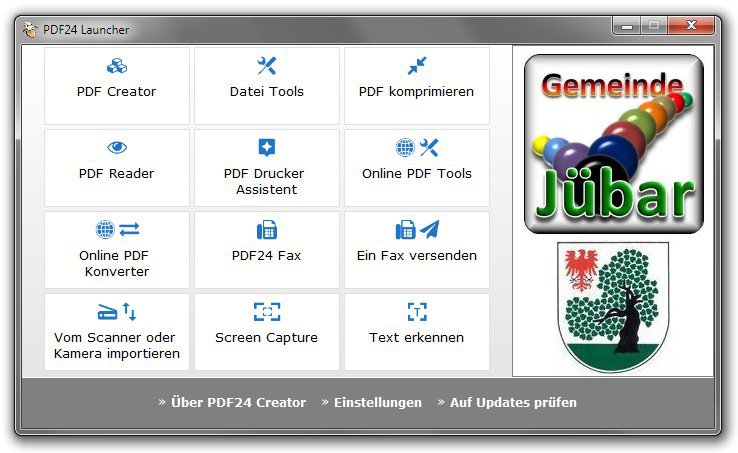 Mit dem auf Jübar personalisierten PDF24-Creator wird dem PC-Anwender mit dem 'Schäfchen-Logo' auf unserer Webseite ein kostenloses Werkzeug