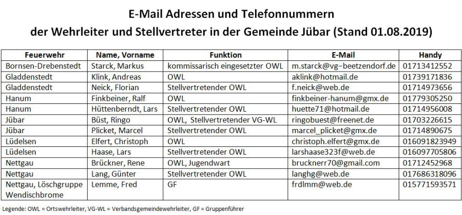- Gemeinde - Ansprechpartner der Feuerwehren -