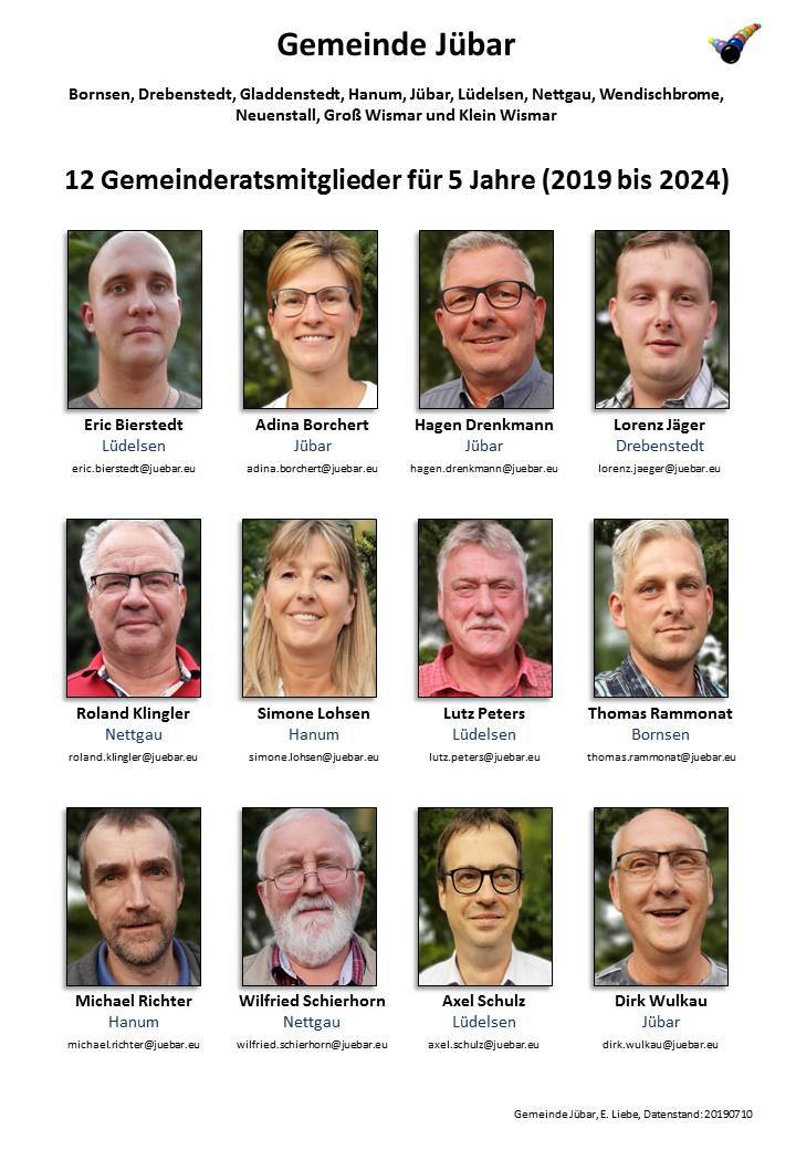Gemeinde Jübar - Die Gemeinderäte für die Legislaturperiode 2019 bis 2024 wurden vereidigt und nehmen ihr Ehrenamt war. Um untereinander und für die Bürger erreichbar zu sein, hat jede/r Rat eine Jübarer Weiterleitungs-Mailadresse erhalten. Ebenso sind der Bürgermeister und die Räte über die Webseite www.juebar.eu zu erreichen. Intern nutzen die Ehrenamtlichen auch WhatsApp über ihre Smartphones. Diese Art von Kommunikation läutet in der Gemeinde eine neue Ära der Verständigung untereinander ein. Die Jübarer und eingemeindeten Orte werden davon profitieren.