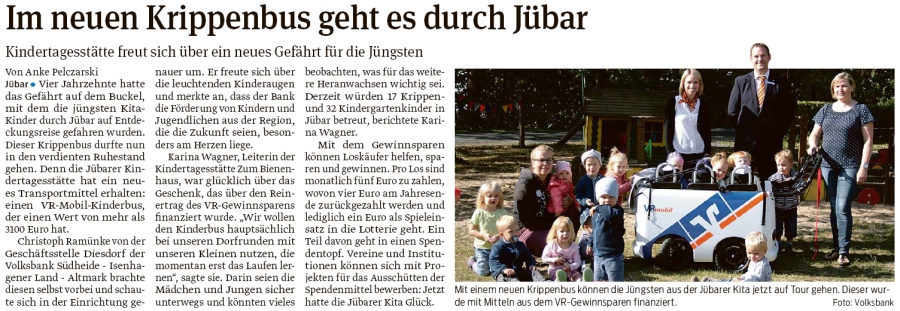 20190907 Volksstimme - Jübar - Kitabus fährt durchs Dorf (Volksbank)