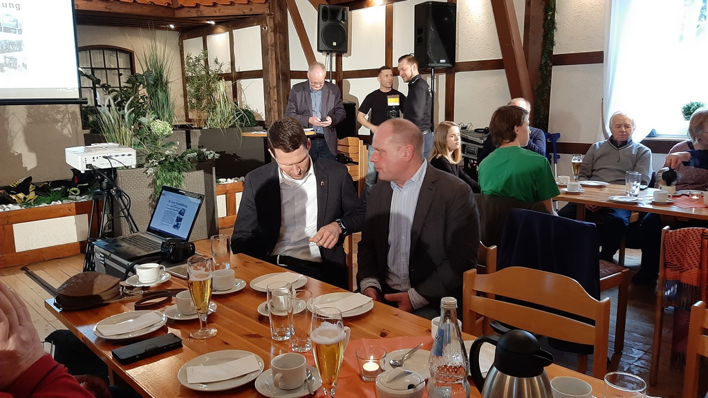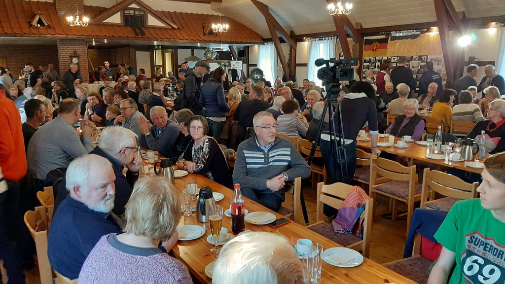 Nettgau - Die Senioren der Gemeinde aus den Orten Gladdenstedt, Nettgau und Wendischbrome trafen sich auf Einladung des Ratsherren Roland Klingler und seinem Team auf dem Nettgauer Saal. Geboten wurden neben Getränken die der Jahreszeit obligatorischen Pfannkuchen, auch Berliner genannt, sowie etwas später Wiener Würstchen satt. Beginn war heute 14:30 Uhr. Die interessanten Gespräche, hervorgerufen durch Wilfried Schierhorns Einladung zur 30-jährigen Grenzfeier nach Radenbeck am kommenden Sonntag, zogen sich bis 18:30 Uhr in den Abend. Ratsherr Schierhorn berichtete von den Vorbereitungen zur Grenzfeier und den Verabredungen, die mit den Radenbecker Komiteemitgliedern getroffen wurden.