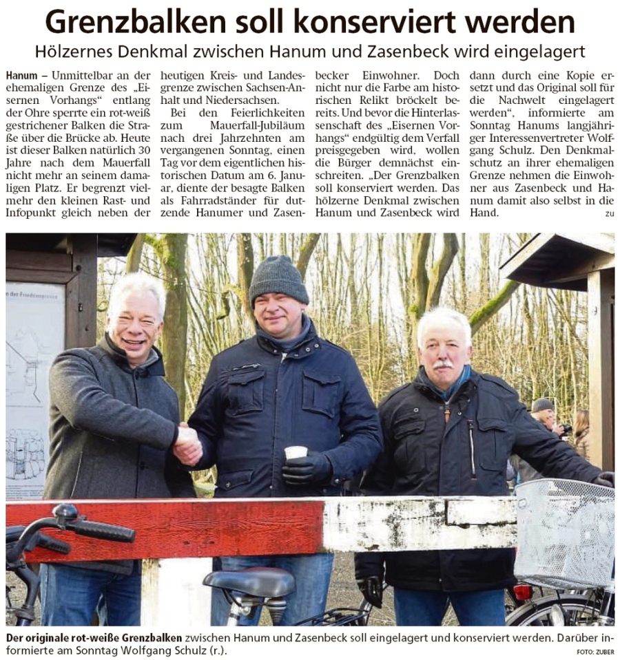 20200107 Altmark Zeitung - 30 Jahre Mauerfall zwischen Hanum und Zasenbeck (Kai Zuber)