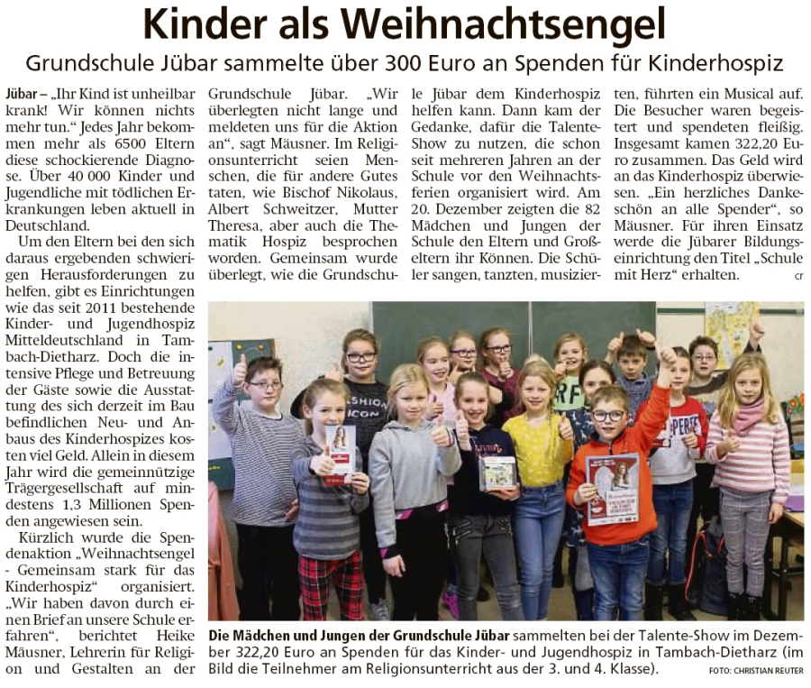 20200109 Altmark Zeitung - Jübar - Spenden für Kinderhospiz an Grundschule gesammelt (Christian Reuter)