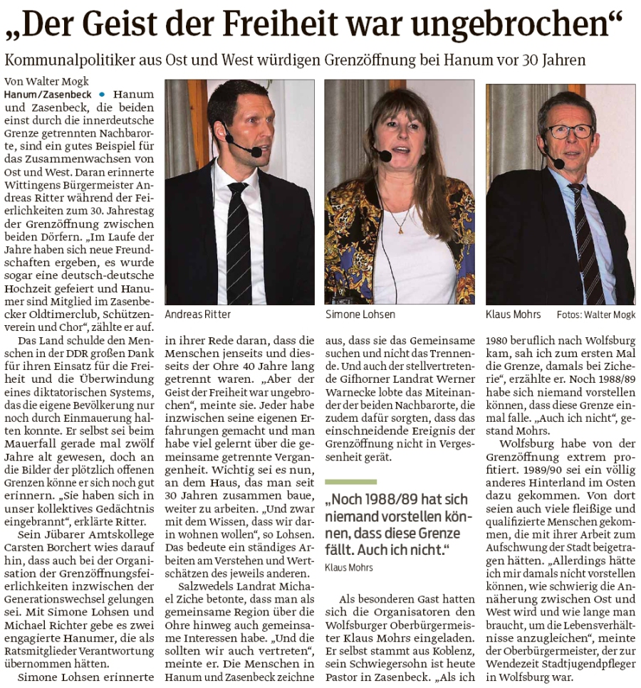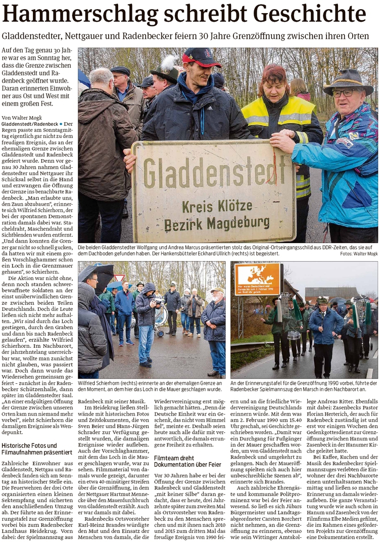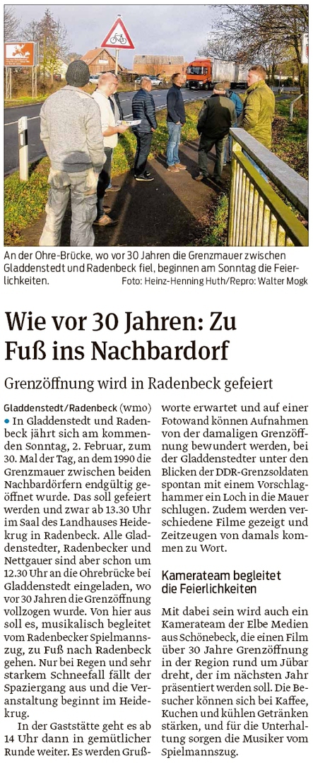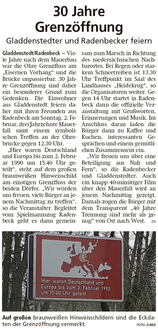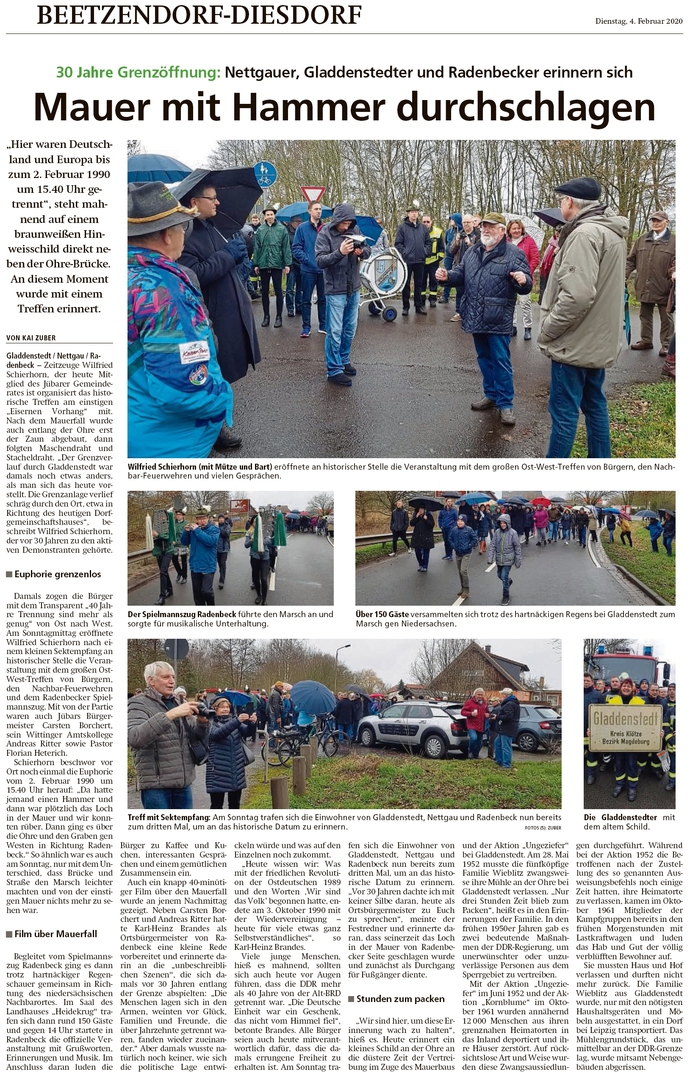 20200204 Altmark Zeitung - Gladdenstedt und Radenbeck - 30. Grenzöffnungsfeier (Kai Zuber)