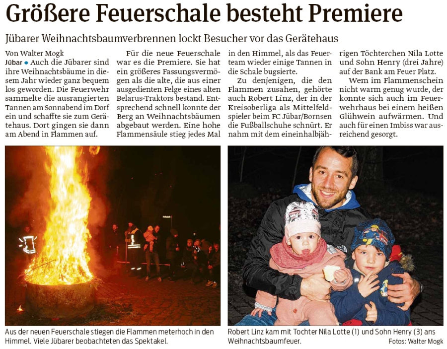 20200111 Volksstimme - Jübar - Weihnachtsbaumverbrennen heute Abend (Walter Mogk)