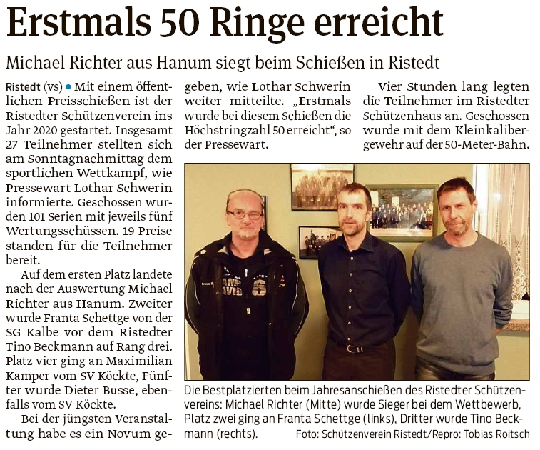 20200122 Volksstimme - Hanum - Michael Richter 1. beim Preisschießen (vs)