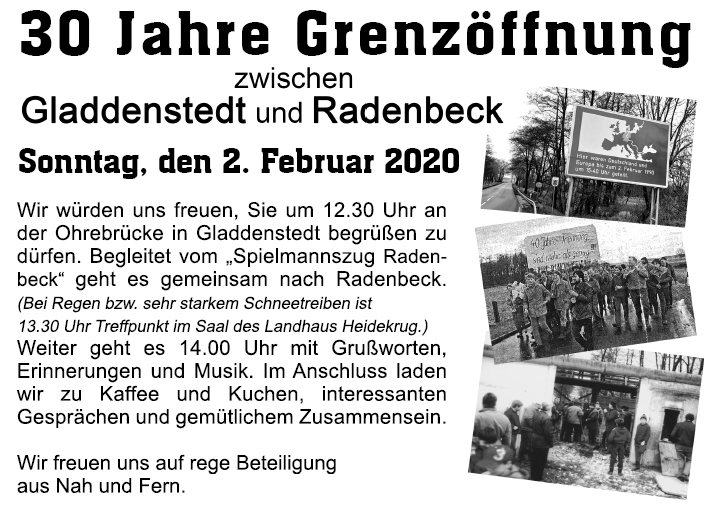 20200124 Einladung zur 30-jährigen Grenzöffnungsfeier zwischen Gladdenstedt und Radenbeck am 2.2.2020 (Christian Kolbe, ELBE MEDIEN Produktion GmbH)
