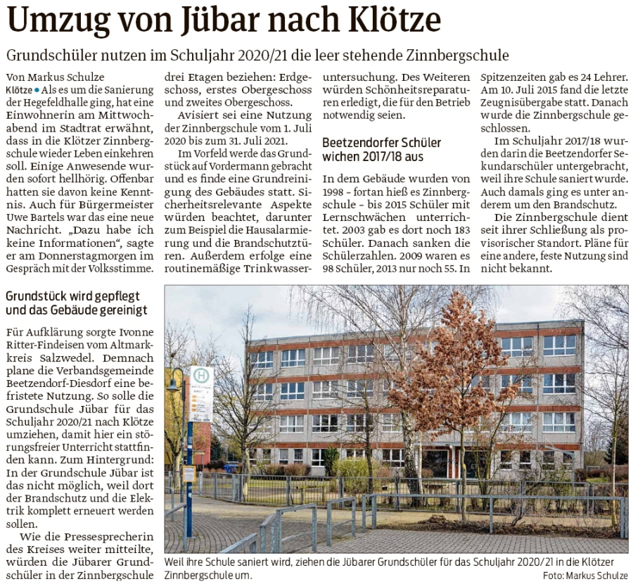 20200120 Altmark Zeitung - Lüdelsen - Gelbe Karte für den Jugendklub (Kai Zuber)