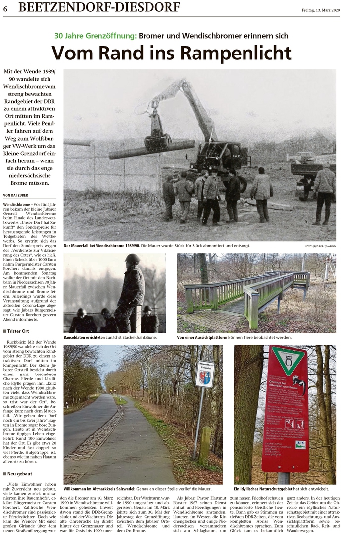 20200313 Altmark Zeitung - 1990 Mauerfall - 30 Jahre Grenzöffnung Wendischbrome-Brome (Kai Zuber)