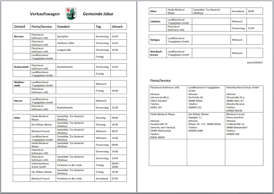 - Gemeinde Jübar - Liste der Verkaufswagen -