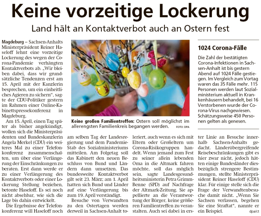 20200408 Altmark Zeitung - Magdeburg - Land hält an Kontaktverbot auch an Ostern fest (dpa-ct)