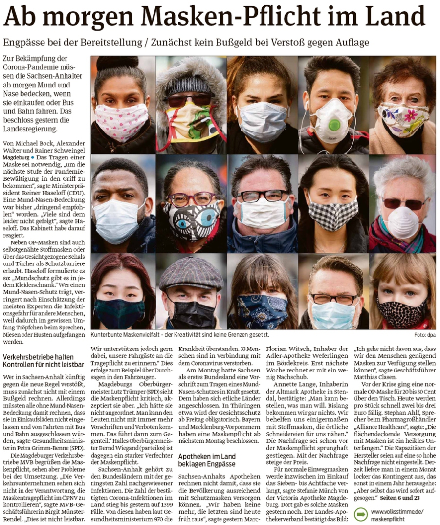 20200422 Volksstimme - LSA - Maskenpflicht ab 20200423