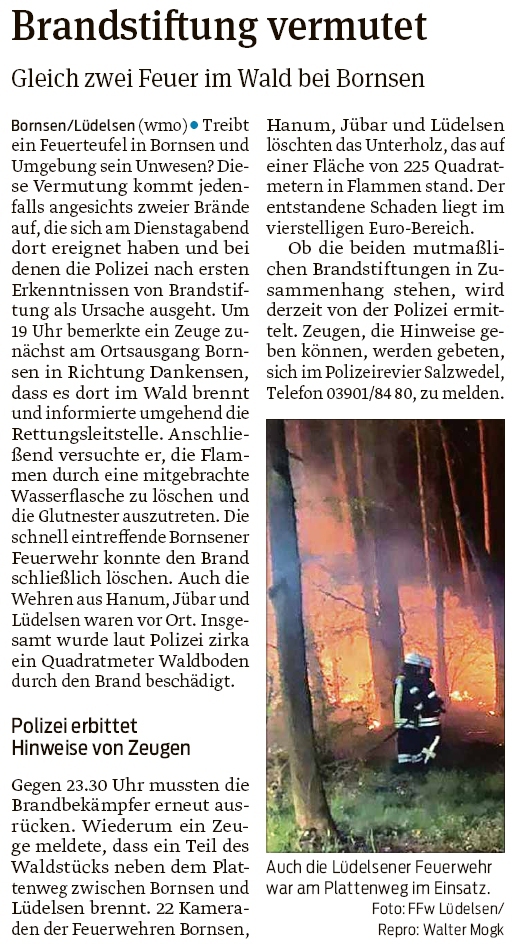 20200424 Volksstimme - Bornsen - Die Feuerwehren der Gemeinde rückten mehrfach aus (Walter Mogk)