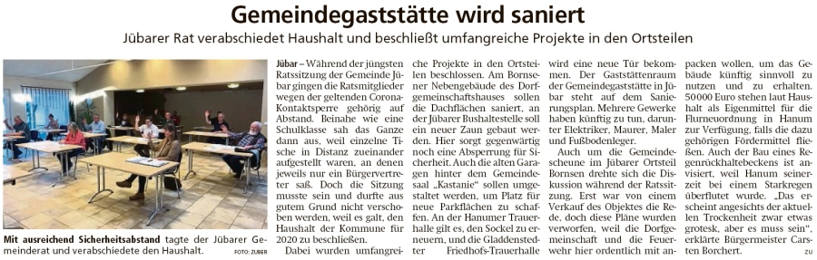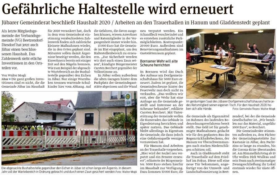 20200429 Altmark Zeitung - Gemeinde Jübar - 6. Ratssitzung mit Thema Haushalt 2020 (Kai Zuber)