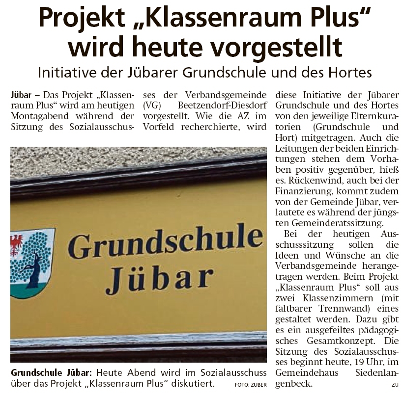 - Jübar - Klassenraum Plus von VG-Rat befürwortet -