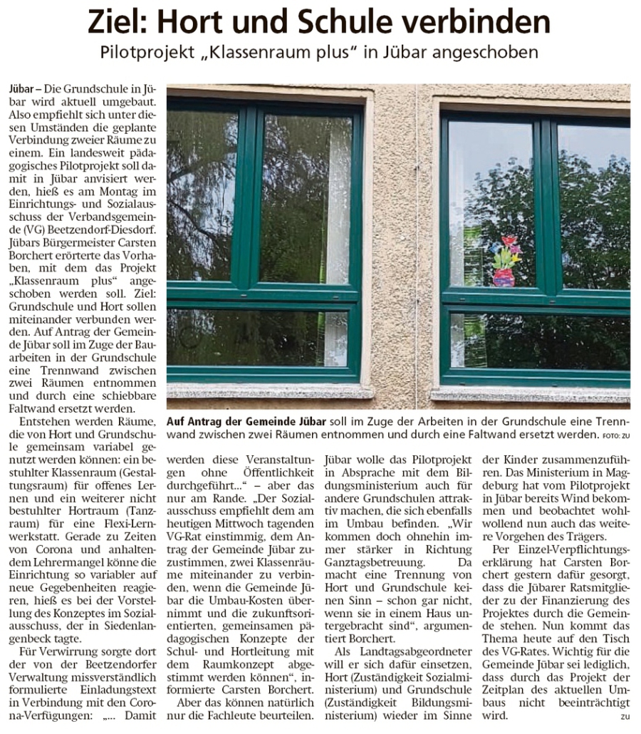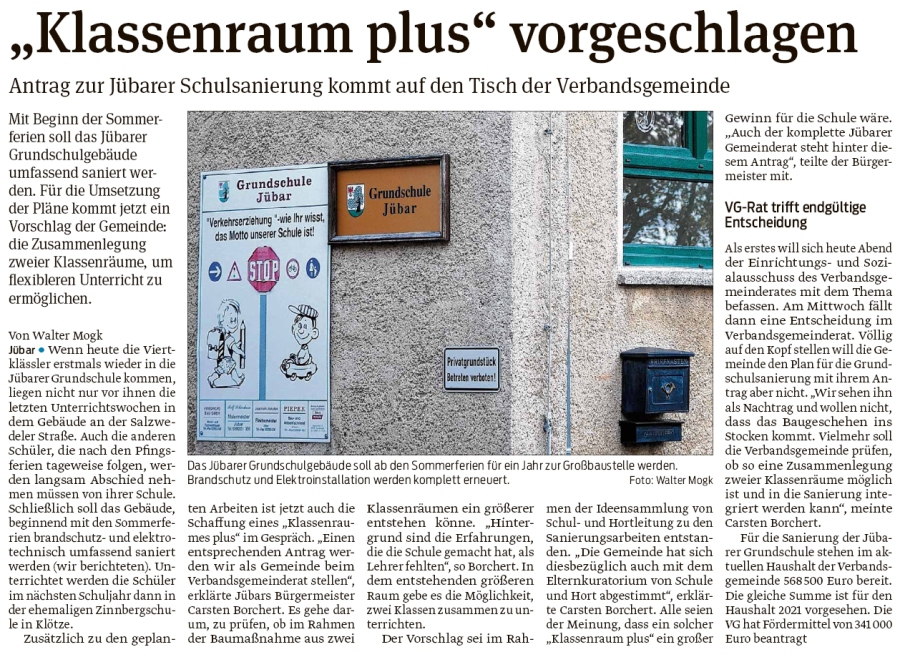 20200512 Altmark Zeitung - Jübar - Klassenraum Plus von VG-Rat befürwortet (Christian Reuter)