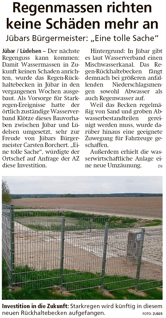 20200515 Altmark Zeitung - Jübar-Lüdelsen - Regen-Rückhaltebecken ausgebaut (Kai Zuber)
