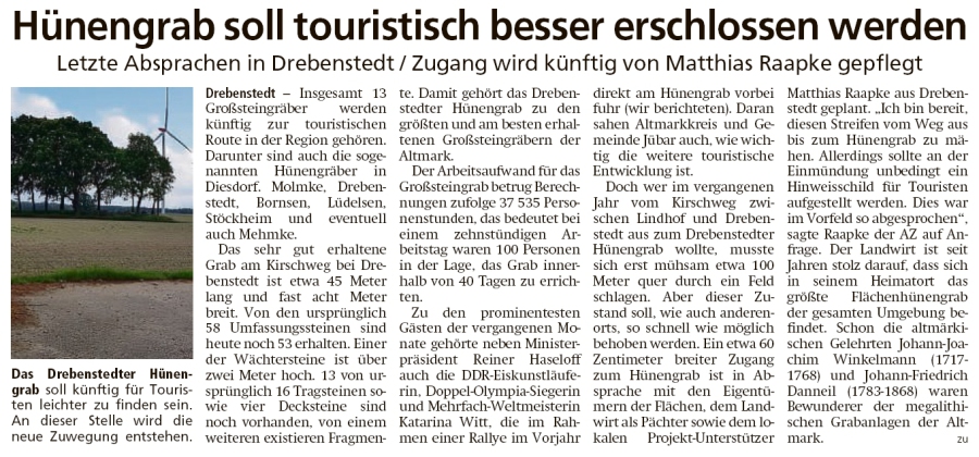 20200529 Altmark Zeitung - Drebenstedt - Hünengrabzugang soll erschlossen werden (Kai Zuber)