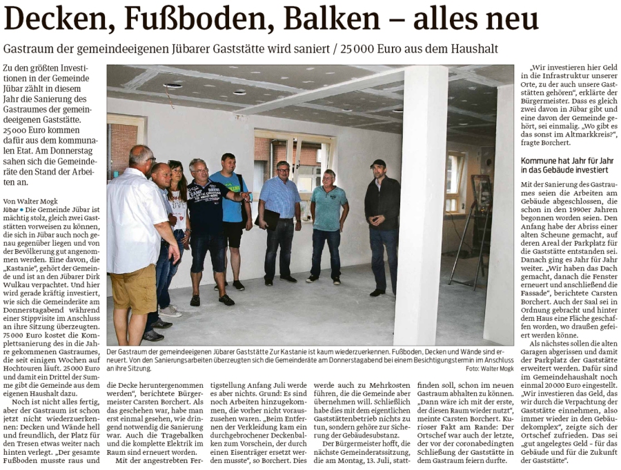 20200622 Altmark Zeitung - Jübar - Gemeindegastraumumbau für 25000€ (Kai Zuber)