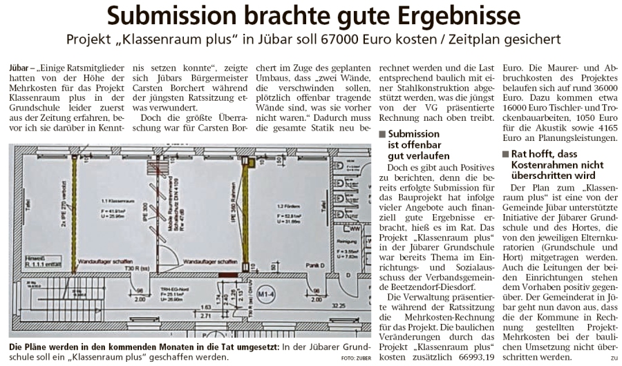 - Jübar - Mehrkosten für Umbau der Jübarer Schule -