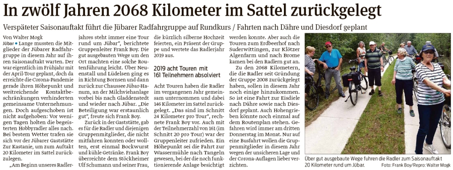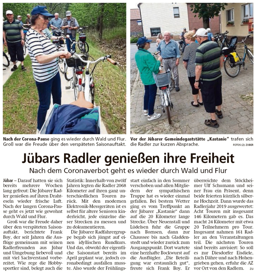 20200708 Altmark Zeitung - Jübar - Jübarer Radfahrgruppe wieder unterwegs (Kai Zuber)