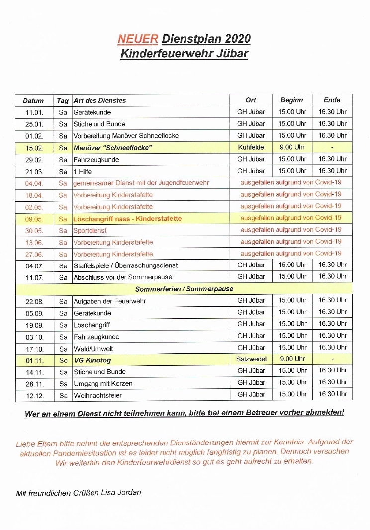 - Gemeinde Jübar - Dienstplan der Kinderfeuerwehr -