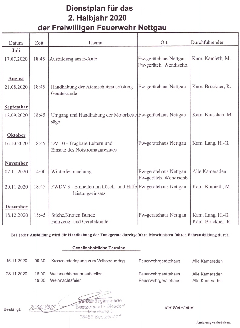 - Nettgau - Dienstplan der Freiwilligen Feuerwehr NG -