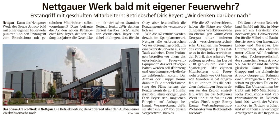 20200805 Altmark Zeitung - Nettgau - Sonae Arauco denkt über Betriebsfeuerwehr nach (Kai Zuber)