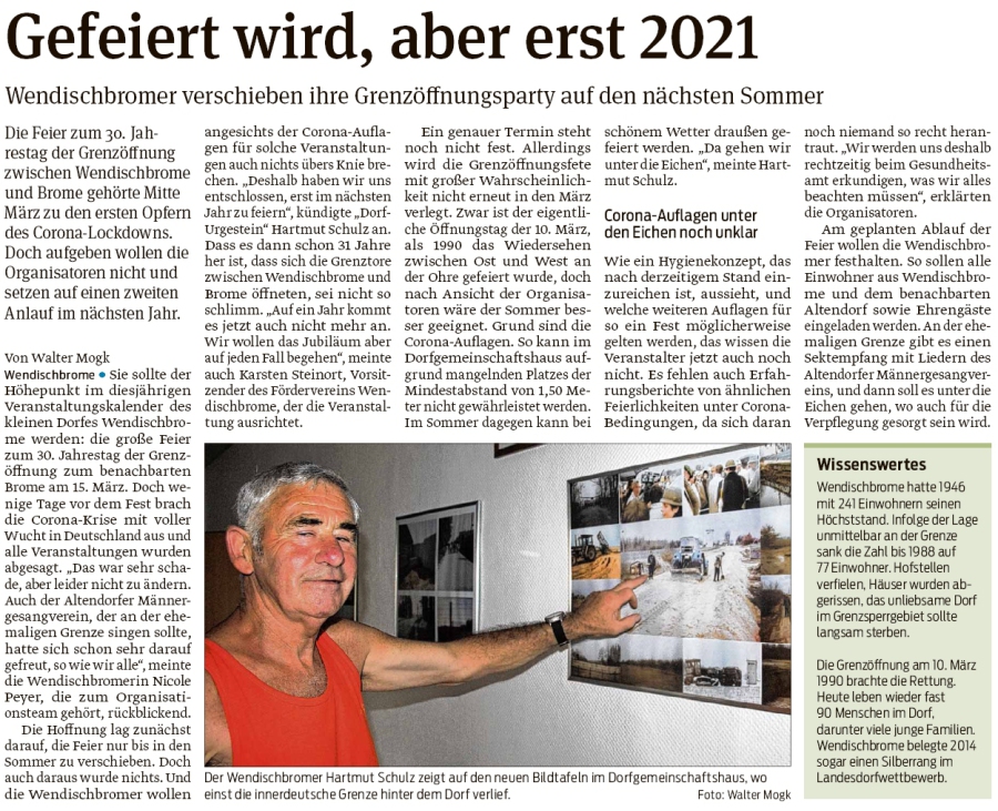 20200812 Volksstimme - Wendischbrome - Grenzöffnungsfeier verschoben (Walter Mogk)