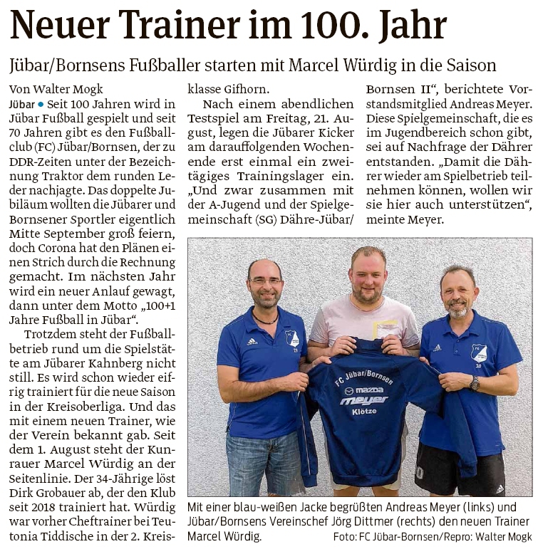 20200817 Volksstimme - Jübar - FCJB mit neuem Trainer Marcel Würdig (Walter Mogk)