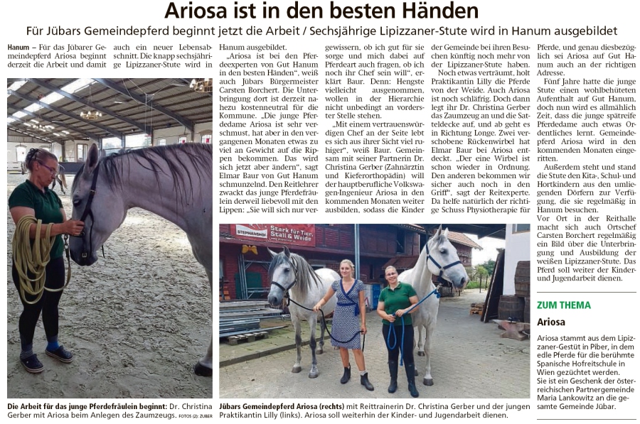 - Hanum - Gemeindepferd Ariosa ist in besten Händen -