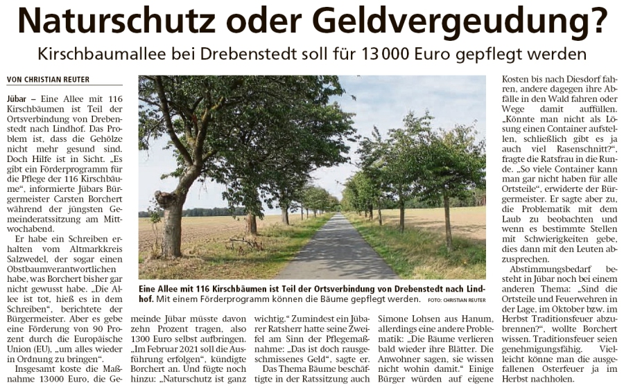 20200904 Altmark Zeitung - Gemeinde Jübar - 10. Ratssitung mit Thema Naturschutz (Christian Reuter)