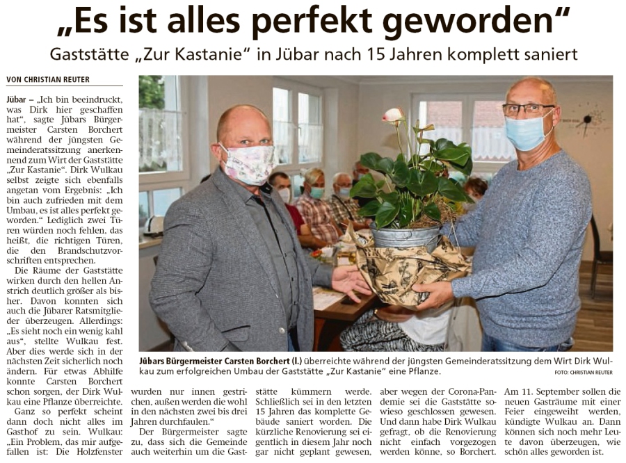 20200908 Altmark Zeitung - Gemeinde Jübar - Erfolgreicher Gaststättenumbau (Christian Reuter)