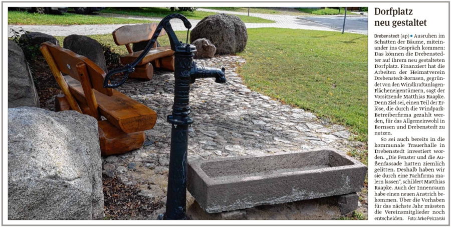 20200914 Volksstimme - Drebenstedt - Heimatverein schafft zentrale Sitzgruppe (Anke Pelczarski)