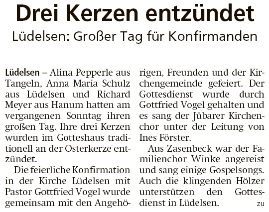 - Lüdelsen - Konfirmation in der Gedächtniskirche -