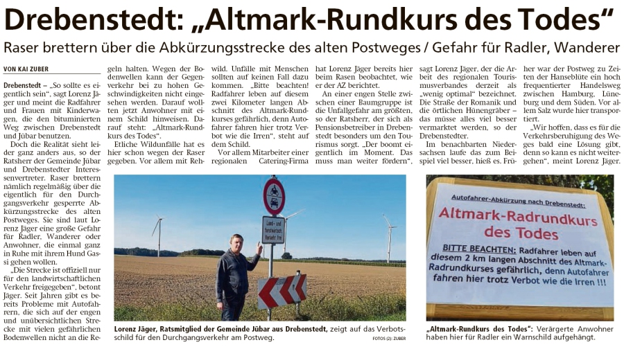 20200910 Altmark Zeitung - Drebenstedt - Abkürzung über den Altmark-Rundkurs (Kai Zuber) Teil 1