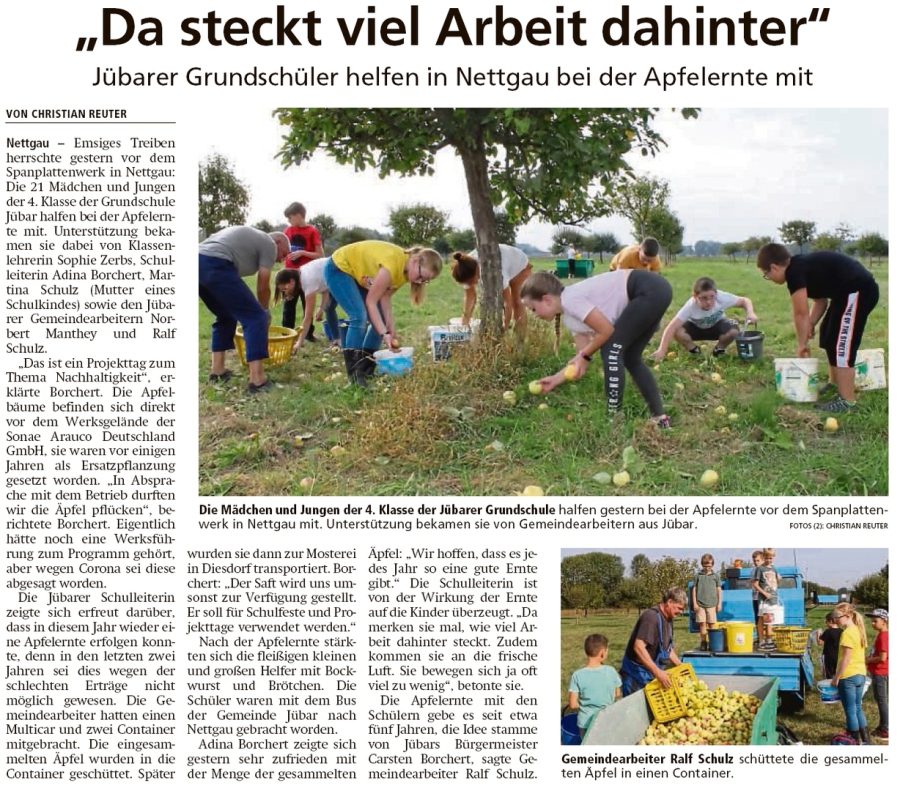 20200924 Altmark Zeitung - Gemeinde Jübar - Grundschüler ernten Äpfel in Nettgau (Christian Reuter)