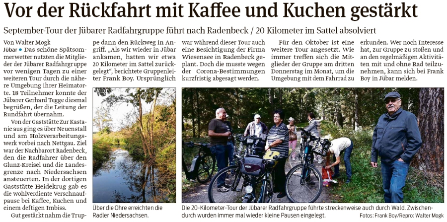 20200924 Volksstimme - Jübar - Radfahrgruppe auf Tour nach Radenbeck (Walter Mogk)