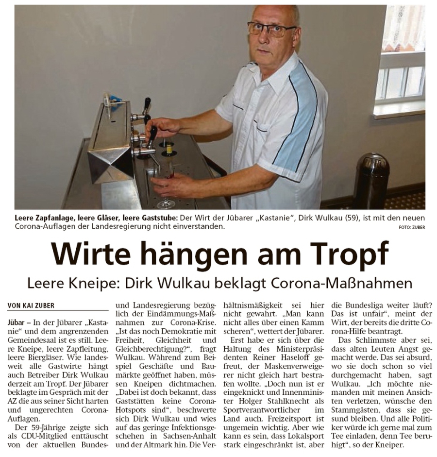 20201109 Altmark Zeitung - Jübar - Dirk Wulkau sorgt sich um Kneipe (Kai Zuber)
