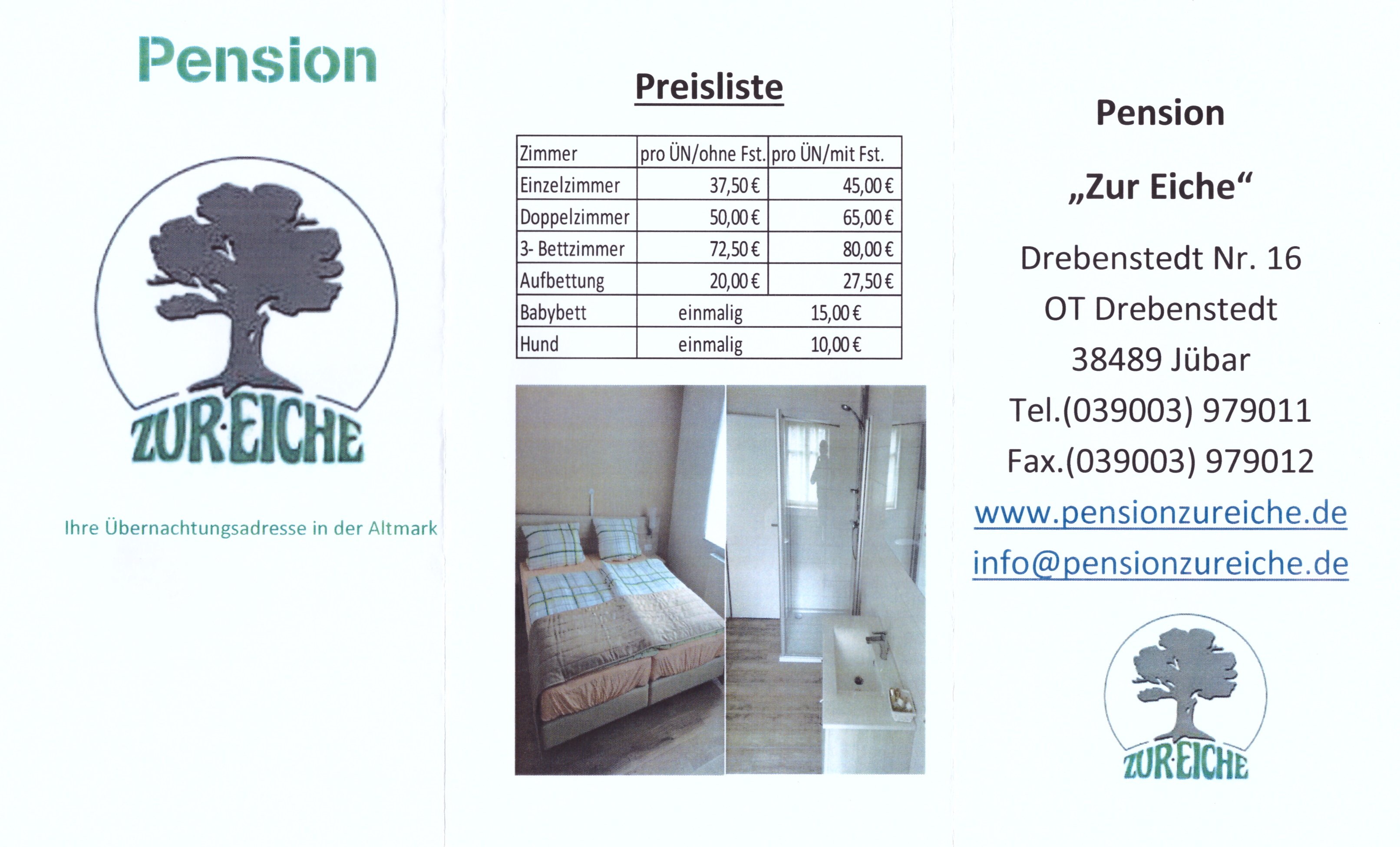 Die Pension 'Zur Eiche' bietet Ihnen als Handzettel einen Flyer mit den wichtigsten Daten.