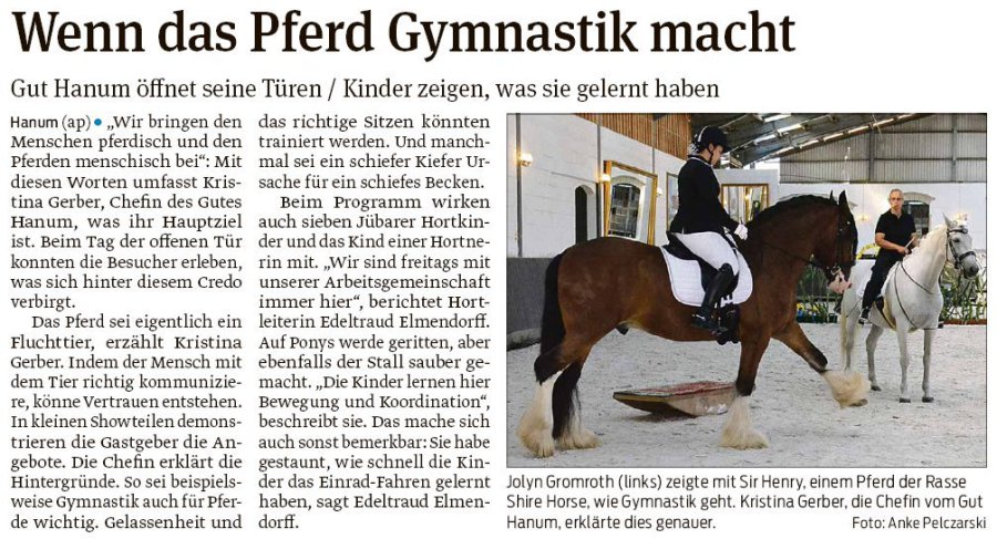 Im Rahmen des Schulprojektes 'Gemeindepferd' sind die Kinder regelmässig auf Gut Hanum zu Gast und lernen alles rund um die Pferde.