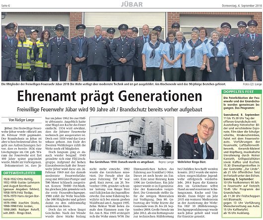 20180906 Altmark Zeitung - Jübar - FFW 90 Jahre von Rüdiger Lange