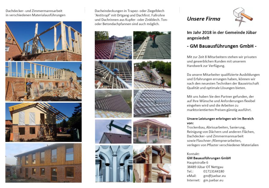 Adresse: GM Bauausführungen GmbH, Inhaber und Geschäftsführer Matei Gabor, Hauptstr. 6, 38489 Jübar OT Nettgau